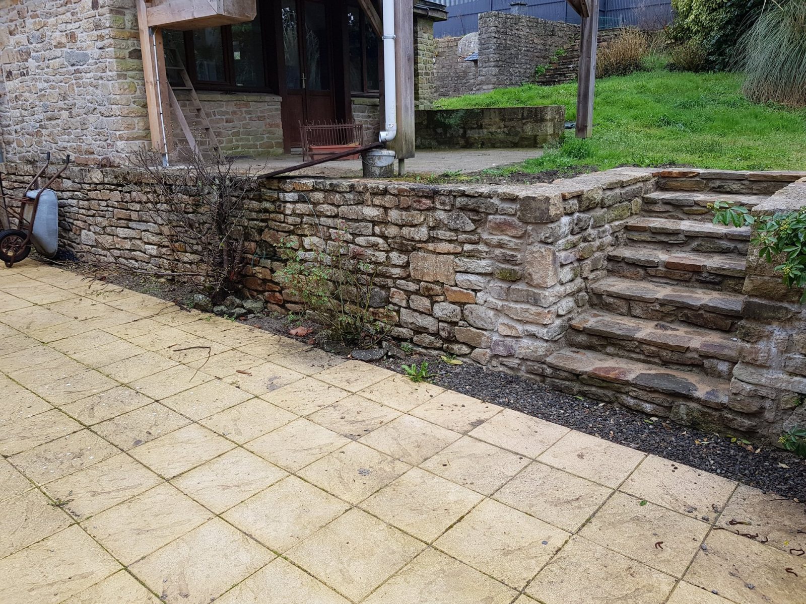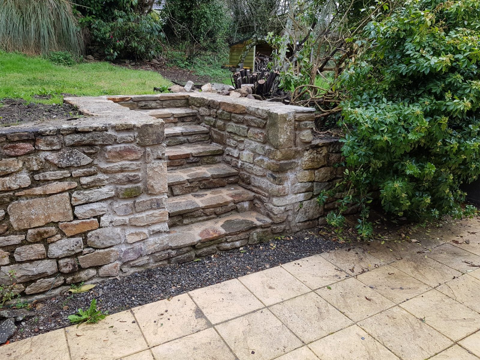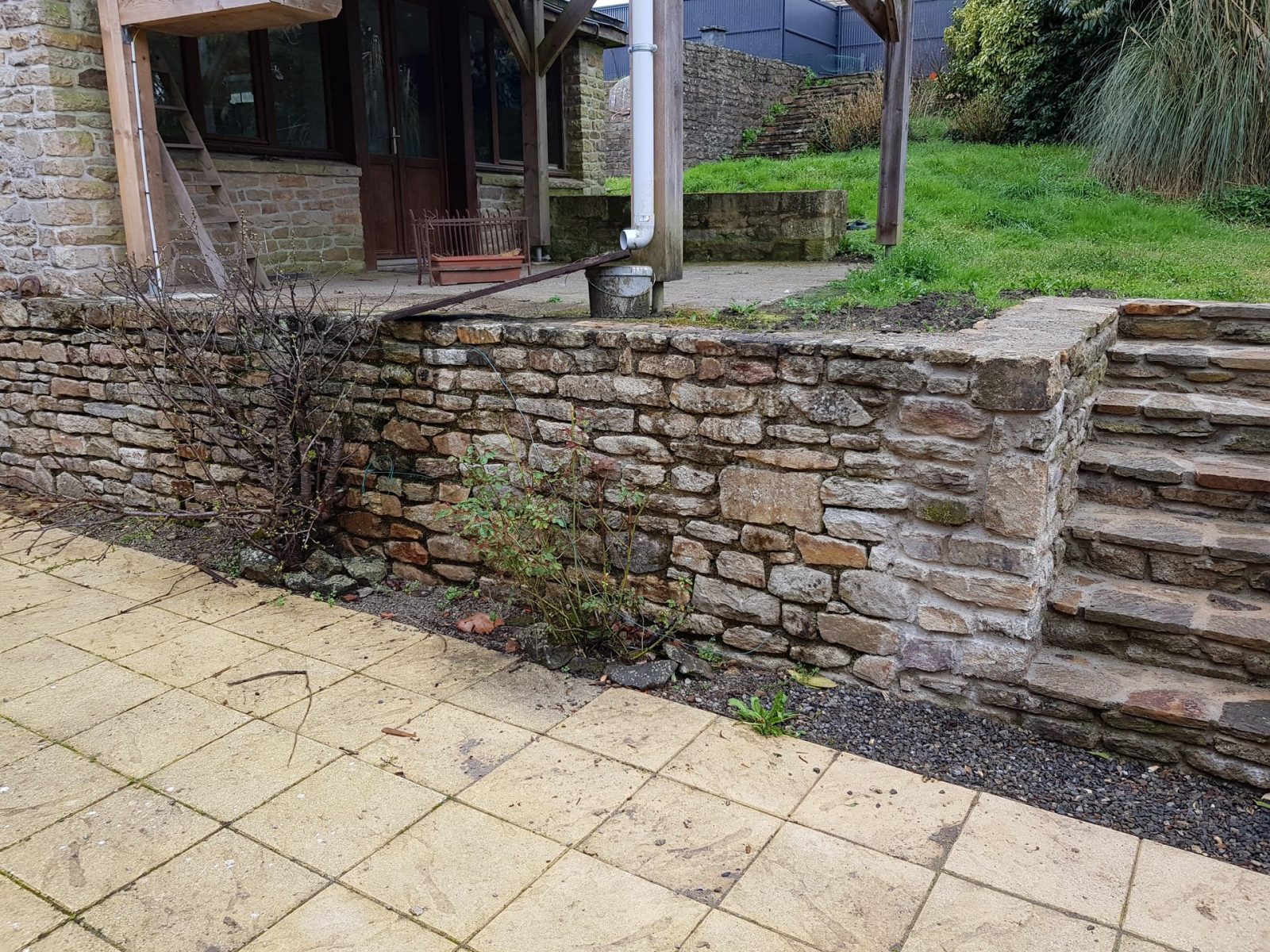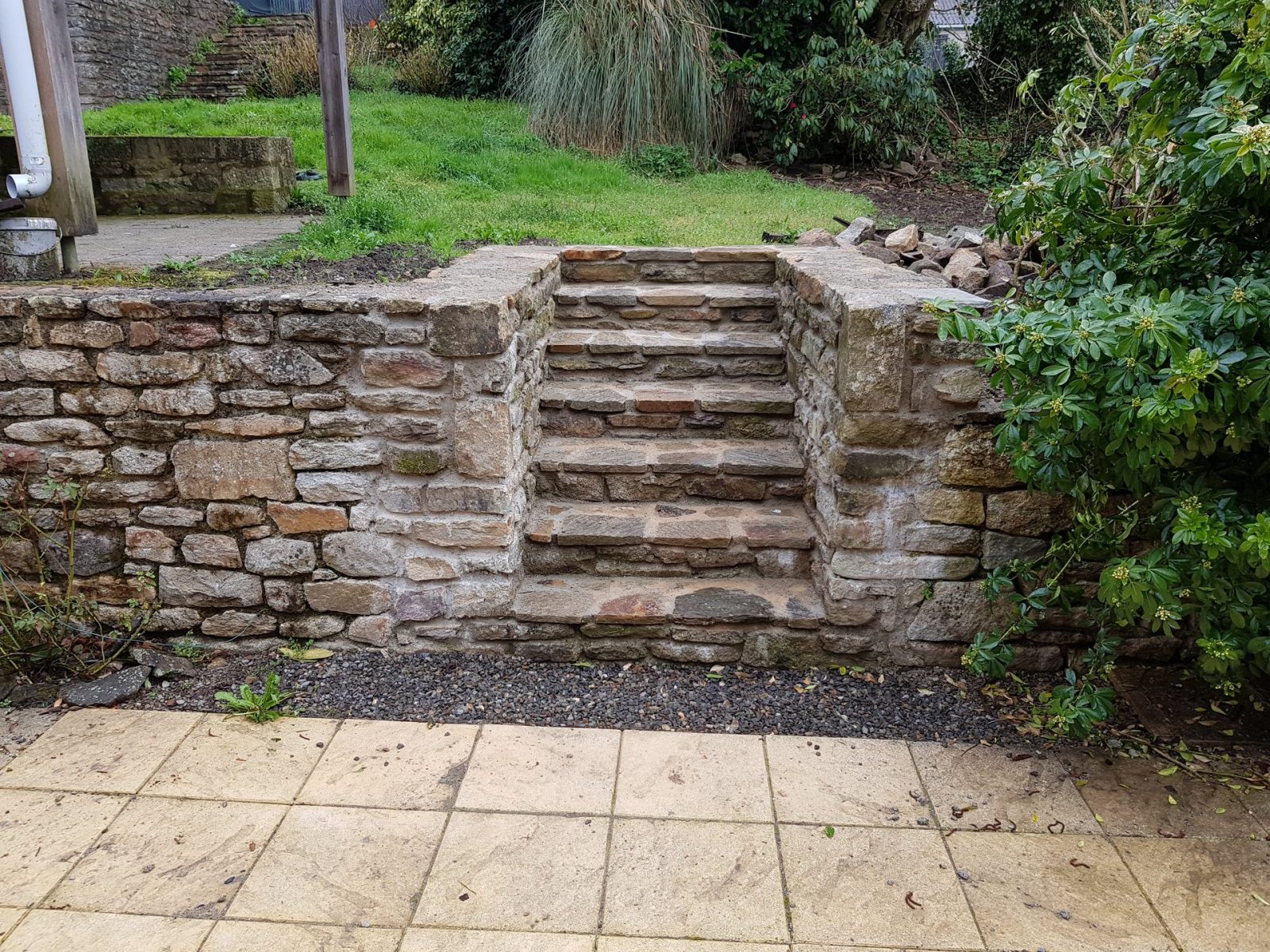 Travail de la pierre: Reprise de mur existant en pierres, création d’un escalier.